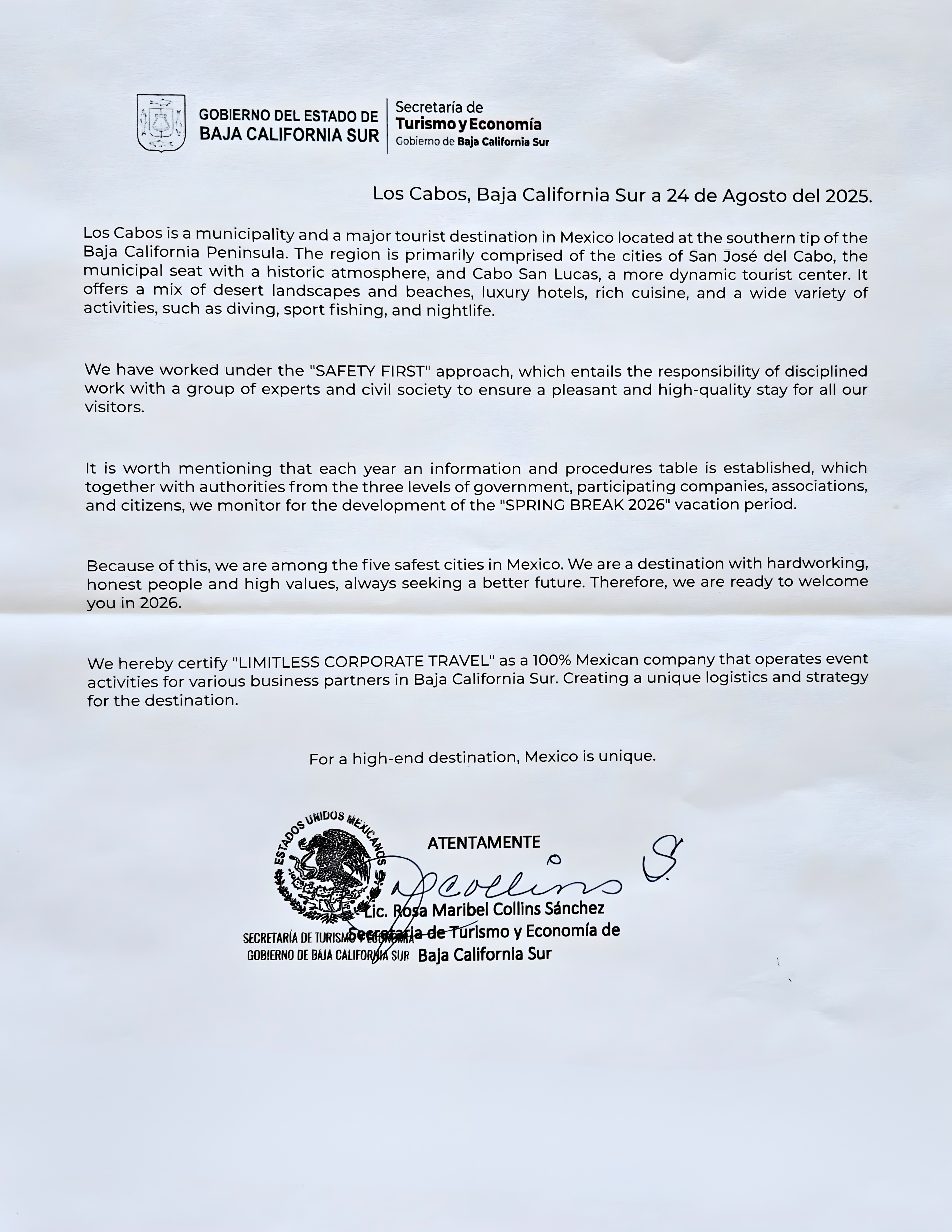 Limitless Curated Travel is proud to operate in close alignment with the standards, values, and long term vision that define Los Cabos as a world-class.